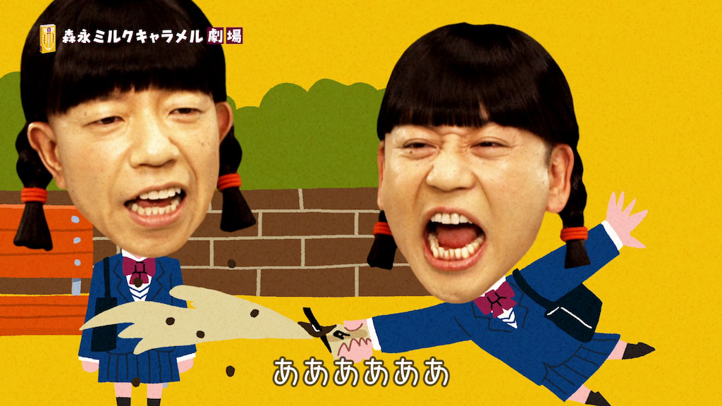 出演はバイきんぐのおふたり、キャラメル食べて心を休めようという全部で4タイプのアニメコントです。