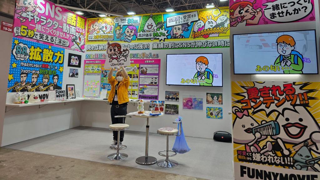 ブースを盛り上げるのはもちろん、まだキャラクターアニメを展示回で使っている企業さまは少ないので、目新しく足を止めてくださる方が多いと聞きました!