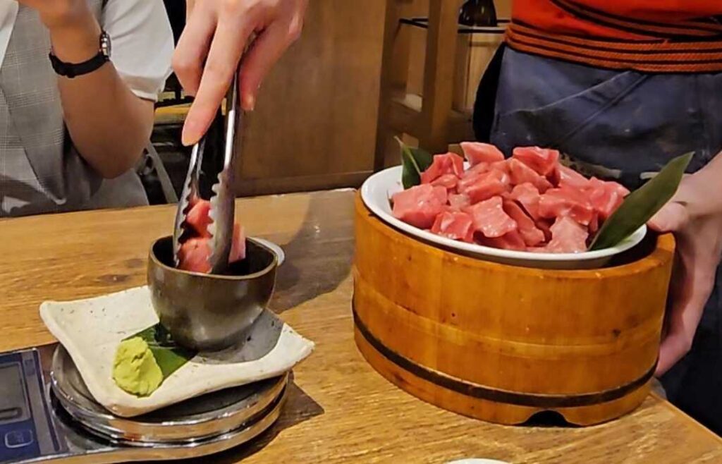 本マグロぶつの量り売りがあったり、